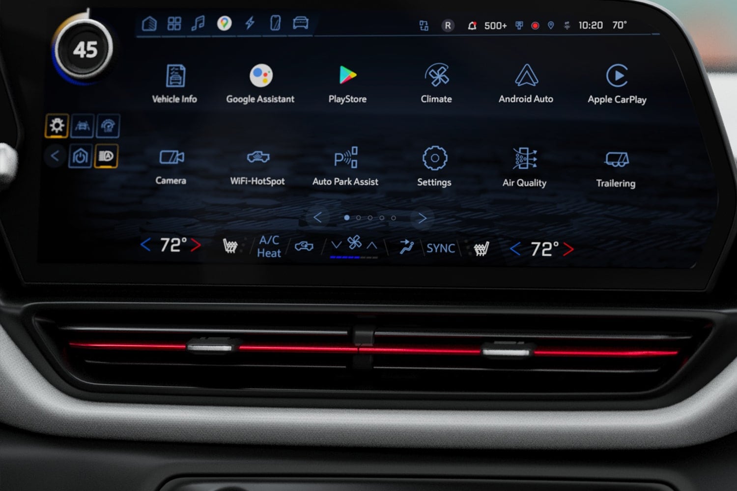 The unique Chevy Silverado EV offers a different design than its traditional gas-powered Silverado counterpart. Thanks to the Ultium Platform, you have access to a spacious front trunk that can help carry some additional cargo. The Silverado EV boasts an aerodynamic design with high-tech lighting that gives it a futuristic look and feel. You can equip the Chevrolet truck with up to 24-inch wheels and a panoramic fixed-glass roof to make the interior feel more spacious. The Silverado model also boasts a Multi-Flex Midgate with pass-through to fit items up to 10 feet and 10 inches long. The Multi-Flex Tailgate can configure in six modes to make it easier to get in and out of the truck bed and keep larger items secure. Inside, the Silverado EV offers a spacious interior, thanks to the EV design. You can travel in comfort and harmony when choosing the Chevrolet Silverado EV.