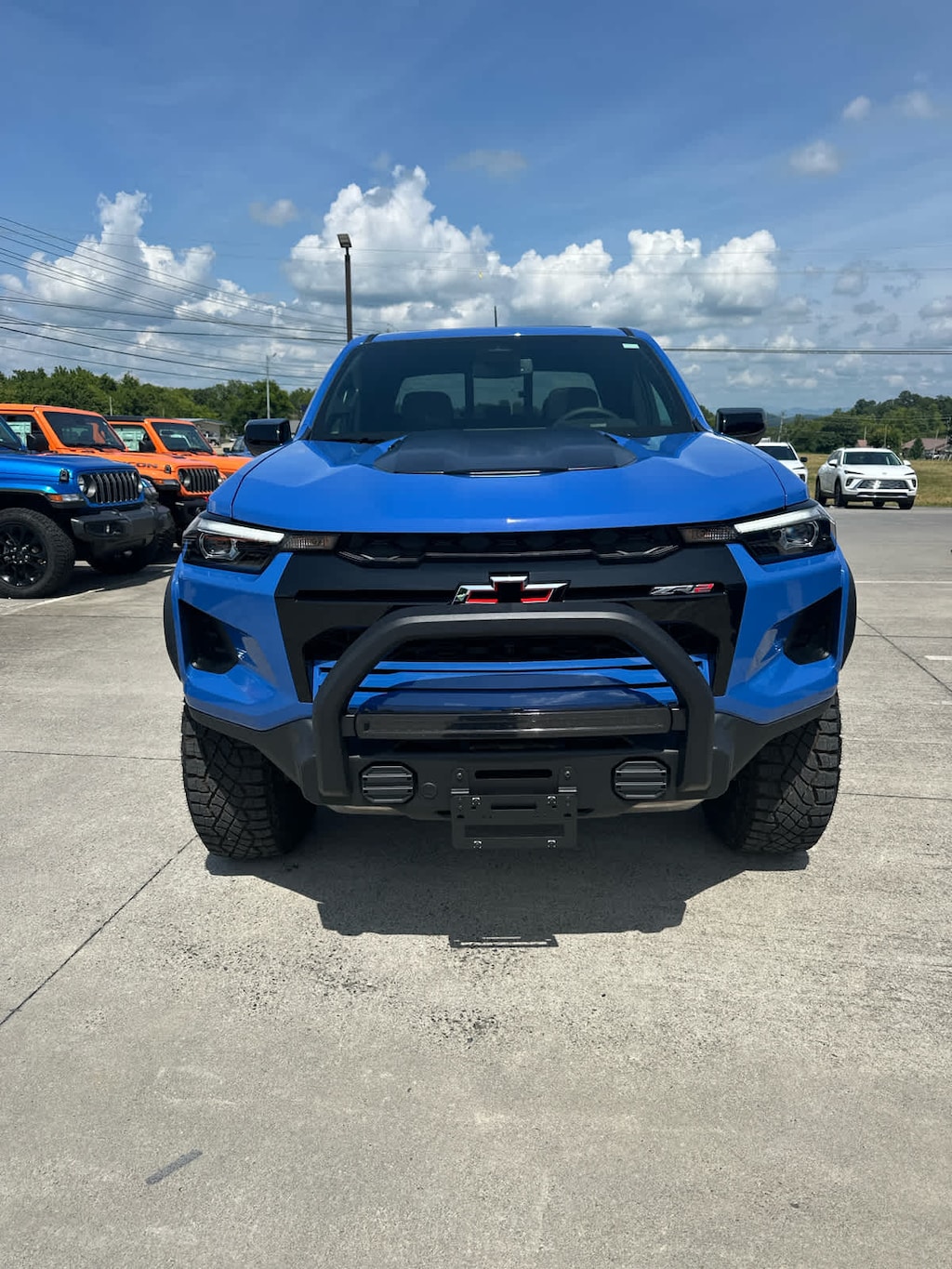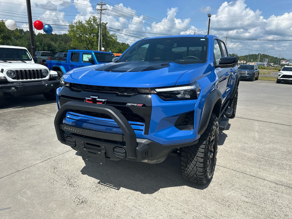 TECHNOLOGY PACKAGE includes (KSG) Adaptive Cruise Control, (UKK) Rear Pedestrian Alert and (UV2) HD Surround Vision (Includes (UQA) Bose Premium Audio System.), LPO, OFF-ROAD ASSIST STEPS, REMOVABLE, (FRONT & REAR) (dealer-installed), SUNROOF, POWER SLIDING GLASS WITH MANUAL SHADE, ENGINE, TURBOMAX (310 hp [231 kW] @ 5600 rpm, 430 lb-ft of torque [583 Nm] @ 3000 rpm) (STD), TRANSMISSION, 8-SPEED AUTOMATIC (STD). Chevrolet 4WD ZR2 with Reef Blue Metallic exterior and Jet Black/Artemis interior features a 4 Cylinder Engine with 310 HP at 5600 RPM*.