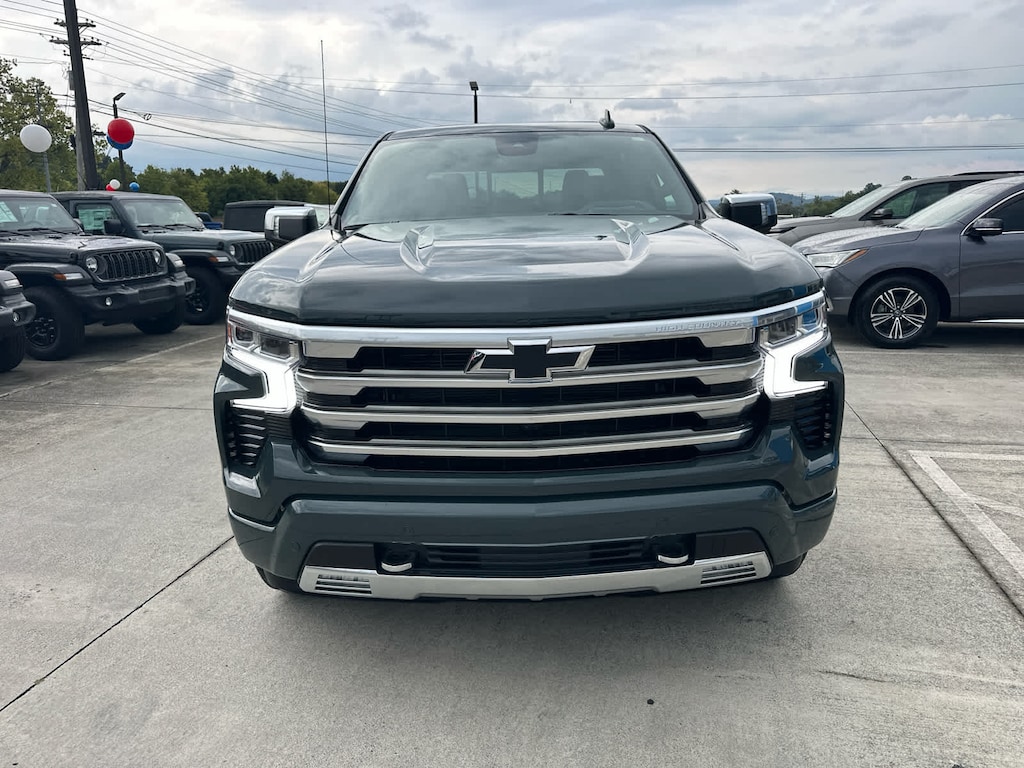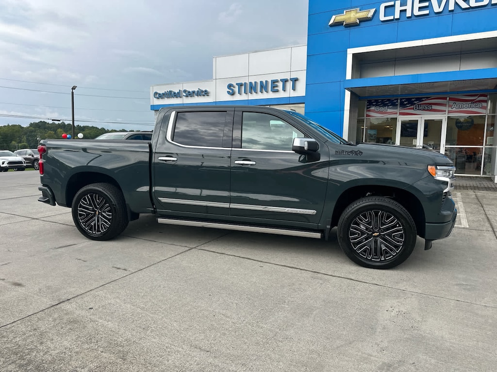 LPO, 22" (55.9 CM) 6-SPOKE LOW GLOSS BLACK WHEELS WITH MACHINED ACCENTS LPO wheels will come with 4 steel 22" wheels from the factory with alignment specs set to 22" LPO wheel selected. Includes wheel locks. (dealer-installed), TECHNOLOGY PACKAGE includes (DRZ) Rear Camera Mirror and (UV6) 15" Diagonal Head-Up Display, LPO, HARD FOLDING TRUCK BED COVER BY REALTRUCK ADVANTAGE (dealer-installed), ASSIST STEPS, POWER-RETRACTABLE with rearward articulation (providing bed access), SUNROOF, POWER on Crew Cab models, SUSPENSION PACKAGE, ADAPTIVE RIDE CONTROL, LPO, ALL-WEATHER FLOOR LINERS 1st and 2nd rows on Crew Cab and Double Cab, (includes Chevrolet Bowtie logo), TAILGATE, MULTI-FLEX with six functional load/access features, NOTE: Auto release can be disabled if ball hitch is installed. See Owner's manual for details, AUDIO SYSTEM, CHEVROLET INFOTAINMENT 3 PREMIUM SYSTEM with Google built-in compatibility (select service plan required, terms and limitations apply) including navigation capability, 13.4" diagonal HD color touchscreen, includes multi-touch display, AM/FM stereo, Bluetooth® streaming audio for music and most phones; featuring Wireless Apple CarPlay® and Wireless Android Auto® capability for compatible phones, advanced voice recognition, in-vehicle apps, personalized profiles for infotainment and vehicle settings (STD), ENGINE, 5.3L ECOTEC3 V8 (355 hp [265 kW] @ 5600 rpm, 383 lb-ft of torque [518 Nm] @ 4100 rpm); featuring available Dynamic Fuel Management that enables the engine to operate in 17 different patterns between 2 and 8 cylinders, depending on demand, to optimize power delivery and efficiency (STD), TRANSMISSION, 10-SPEED AUTOMATIC with Electronic Transmission Range Selector, (ETRS), electronically controlled with overdrive, tow/haul mode and steering column paddle shifters. Includes Cruise Grade Braking and Powertrain Grade Braking (STD). Chevrolet High Country with Cypress Gray exterior and Jet Black/Umber interior features a 8 Cylinder Engine with 355 HP at 5600 RPM*.